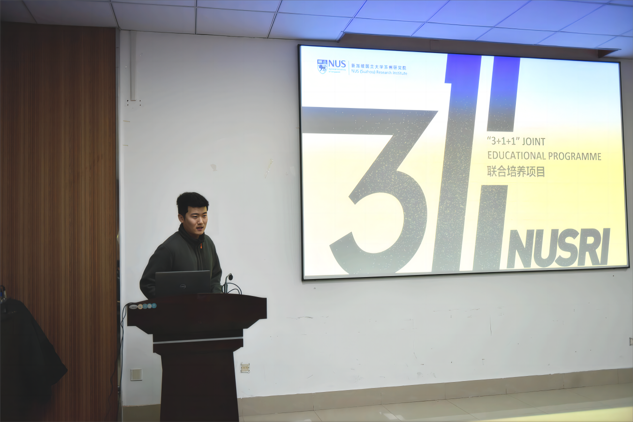 黄子源首先介绍“3+1+1”联合培养项目的具体内容和要求。该项目是两校合作协议框架内的重要组成部分。同学们可在本科阶段后,在新国大继续攻读硕士学位,并于一年内完成学业。他还就申请流程、录取标准、课程设置、毕业要求等详细解读。
