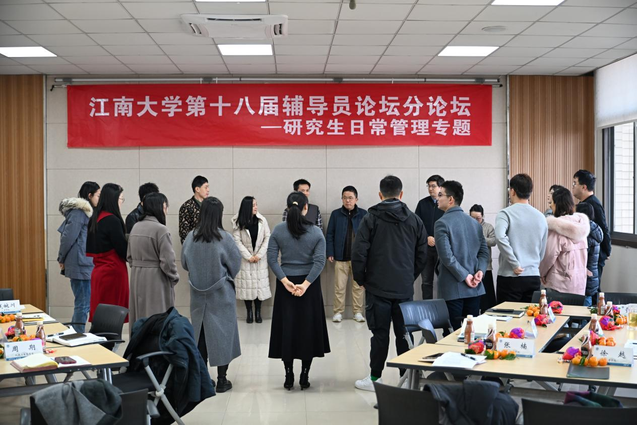 2023年12月27日上午,分论坛顺利举办第一场活动。党委研究生工作部副部长、研究生院副院长陈周,365英国上市官网在线党委副书记、副院长李雷,商学院党委副书记、副院长徐静及来自各学院20余名专兼职辅导员参与活动。