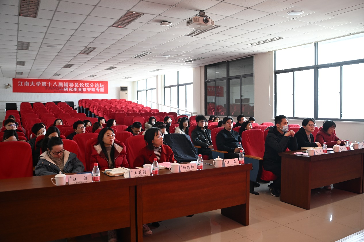 2024年1月3日下午,分论坛顺利举办第二场活动。党委研究生工作部副部长、研究生院副院长陈周,365英国上市官网在线党委副书记、副院长李雷,纺织科学与工程学院党委副书记、副院长杨莉勤,机械工程学院党委副书记、副院长刘升恒,人工智能与计算机学院党委副书记、副院长王莉莉,马克思主义学院党委副书记、副院长郑丹丹及来自各学院50余名专兼职辅导员参与活动。