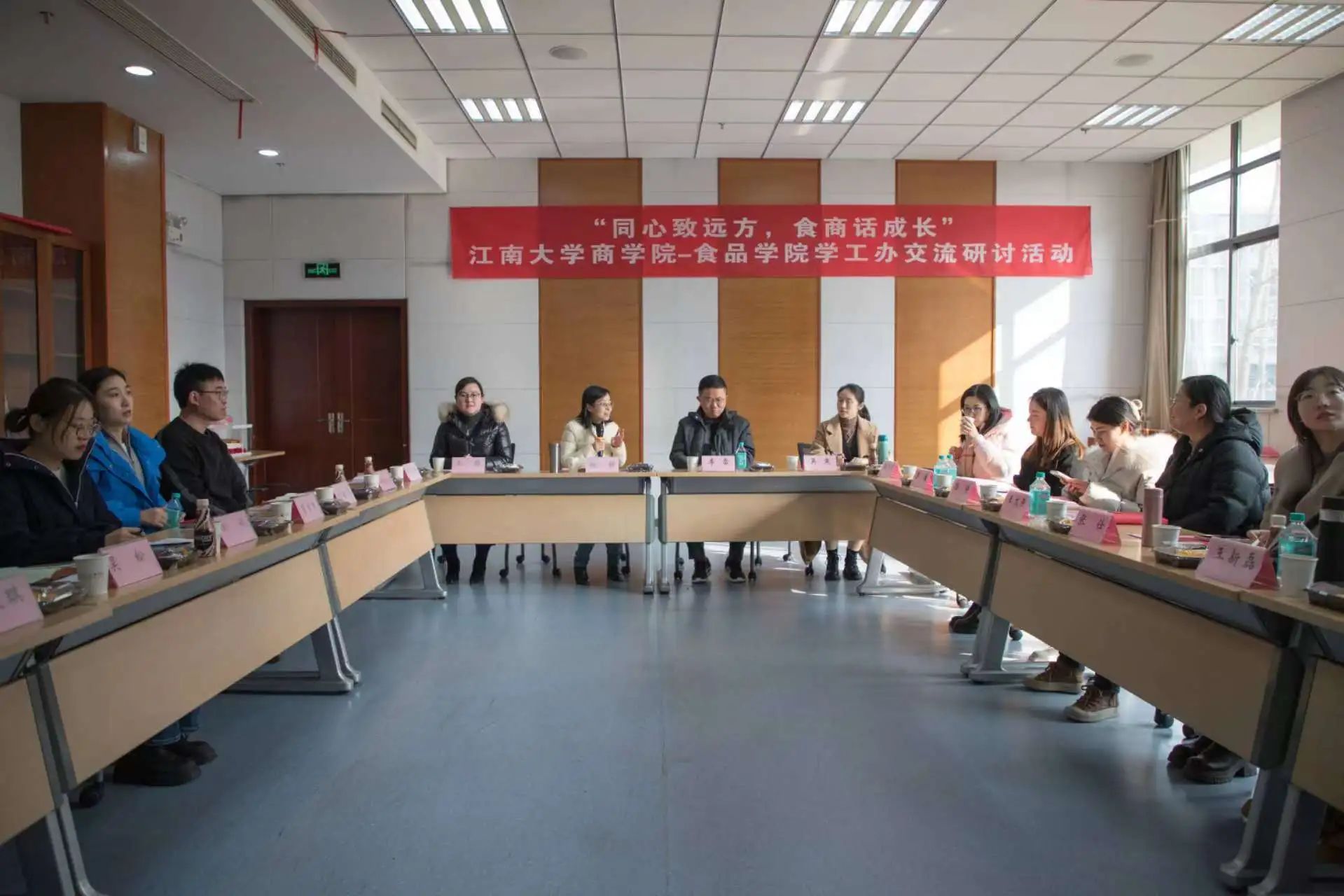 双方在365英国上市官网在线D910会议室开展面对面座谈交流。王莉莉介绍人工智能与计算机学院在人才培养、思政工作等领域的经验做法和未来展望;李雷作题为《奋力推进高质量内涵式发展,创新培育未来食品青年》的分享发言;与会人员就共同关心的话题和联合开展学生活动的可能性予以探讨。座谈会前,对方学院学工组参观食品学科史馆。