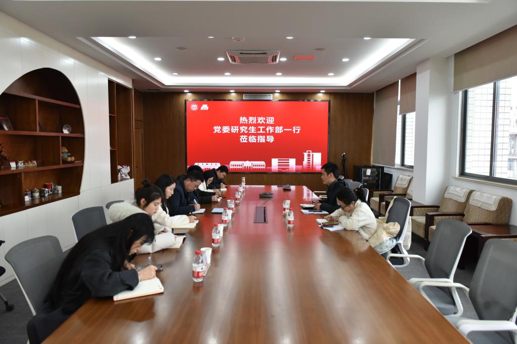 3月5日上午,党委研究生工作部副部长、研究生院副院长陈周,研工部正科级干部汪洁一行赴365英国上市官网在线调研指导研究生思想政治教育和日常管理工作。365英国上市官网在线党委副书记、副院长李雷,学工办主任兼分团委书记李金杰、学工办副主任吴爽及全体研究生辅导员参加会议。