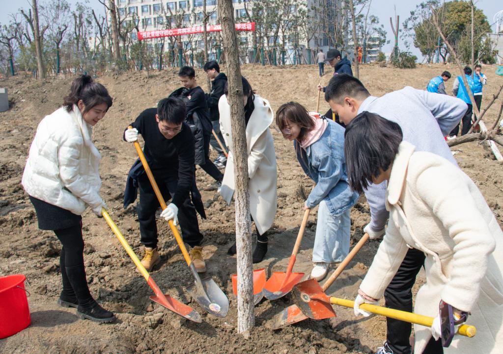 首先由环境中心富有植树经验的员工进行栽种树木的方法讲解和现场演示。随后,师生们领取铁锹与水桶等工具进入场地,有条不紊地立苗、培土、浇水,齐心协力种下一棵棵银杏树苗,焕发出春天的希望。大家脸上无不洋溢着喜悦的笑容。十年树木,百年树人。本次活动的成功举办为校园的靓丽风景再添新绿,通过劳动教育的方式强化了师生共同协作的能力,也进一步树立了校园环保意识,为打造低碳中国献出绵薄之力。