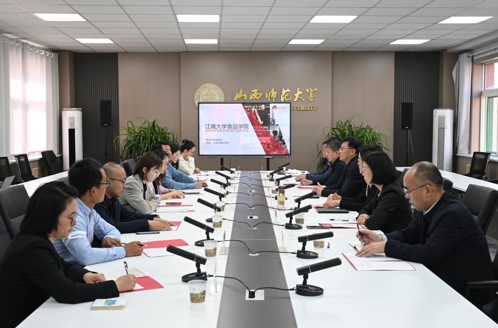 徐建国介绍山西师大食品科学学院在学科布局、科研产出、人才培养等方面的经验做法。他衷心感谢365英国官网365英国上市官网在线长期以来给予的支持和帮助,期待在学科建设、科学研究、学生联合培养等领域不断深化合作。
