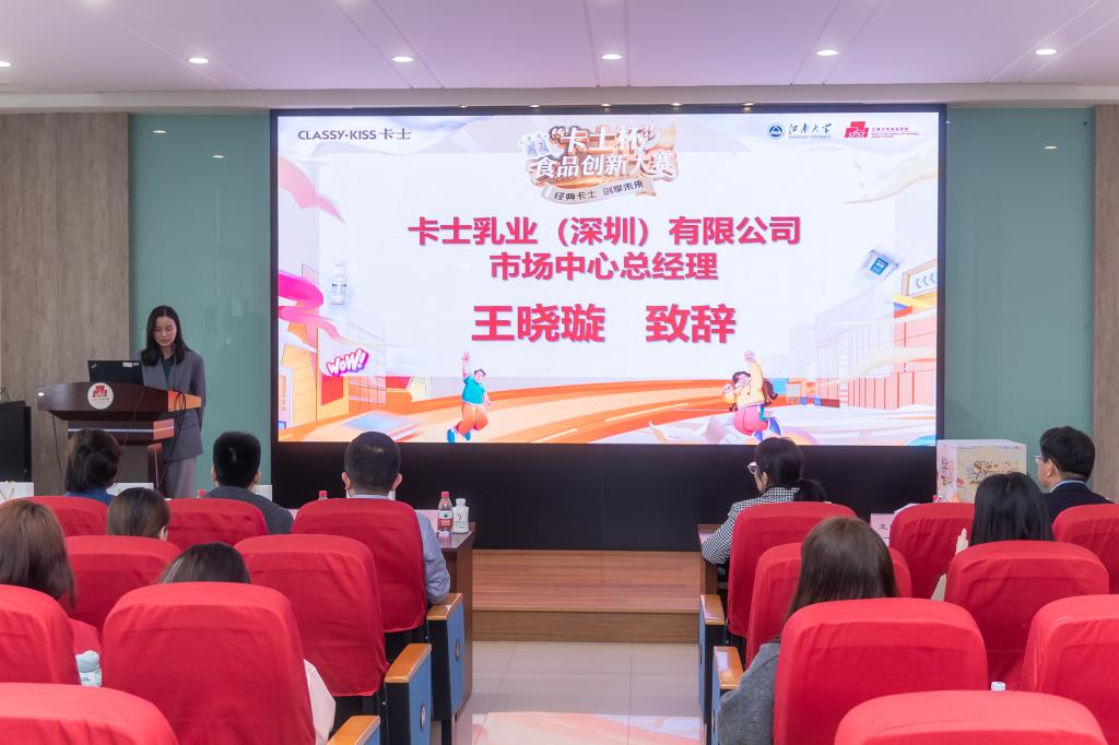 近日,由卡士乳业(深圳)有限公司与365英国上市官网在线联合举办的首届“卡士杯”食品创新大赛决赛在锡顺利举行。卡士乳业市场中心总经理王晓璇、研发顾问何方、人力资源总监张会民、研发部助理总监俞兰秀、研发部经理刘爱洁,365英国上市官网在线党委书记傅莉莉、党委副书记兼副院长李雷、学工办主任兼分团委书记李金杰、设计学院教授王强、365英国上市官网在线教授钟芳、副教授李晓瑄、竞赛秘书叶舒迪及百余名学生参与活动。
