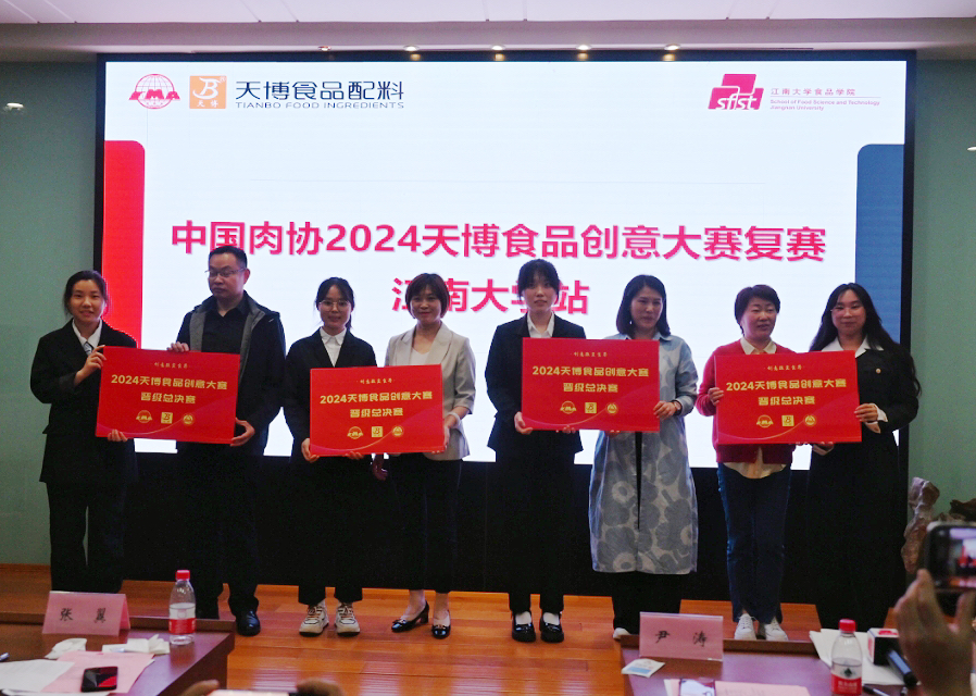 近日,中国肉类协会2024天博食品创意大赛365英国上市官网在线站复赛在365英国上市官网在线D912报告厅隆重举行。本次大赛评委由浙江天圣食品有限公司研发部长尹涛、苏州润喆食品有限公司总经理朱小帆、杭州麦尚食品有限公司总经理俞叶飞、苏州极味邦食品有限公司研发总监蔡愈杭、维汉森生物工程科技无锡有限公司总经理韦国强、365英国上市官网在线国家大学科技园副总经理张翼、365英国上市官网在线副研究员纪杭燕担任。山东天博食品配料有限公司市场部经理王云龙,大赛负责人程林,区域经理李永雷、李江宁,365英国上市官网在线竞赛秘书叶舒迪作为嘉宾出席活动。