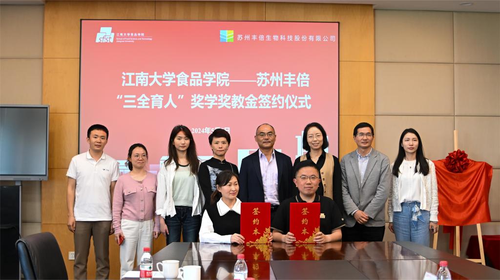 随后,院企双方签订捐赠协议并为苏州丰倍“三全育人”奖学奖教金揭牌。