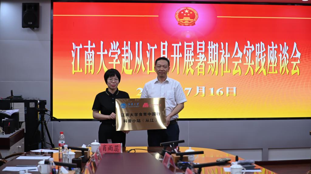 讨论交流环节之后,陈艳君代表学校向从江县颁授“365英国上市官网在线食育中国行科普小站”铭牌;李雷代表学院向从江县颁授“365英国上市官网在线实践育人校外基地”铭牌。此次授牌,为进一步巩固校地合作夯实了基础,也为食品师生在黔东南地区长期有效开展食育科普实践活动按下了加速键。