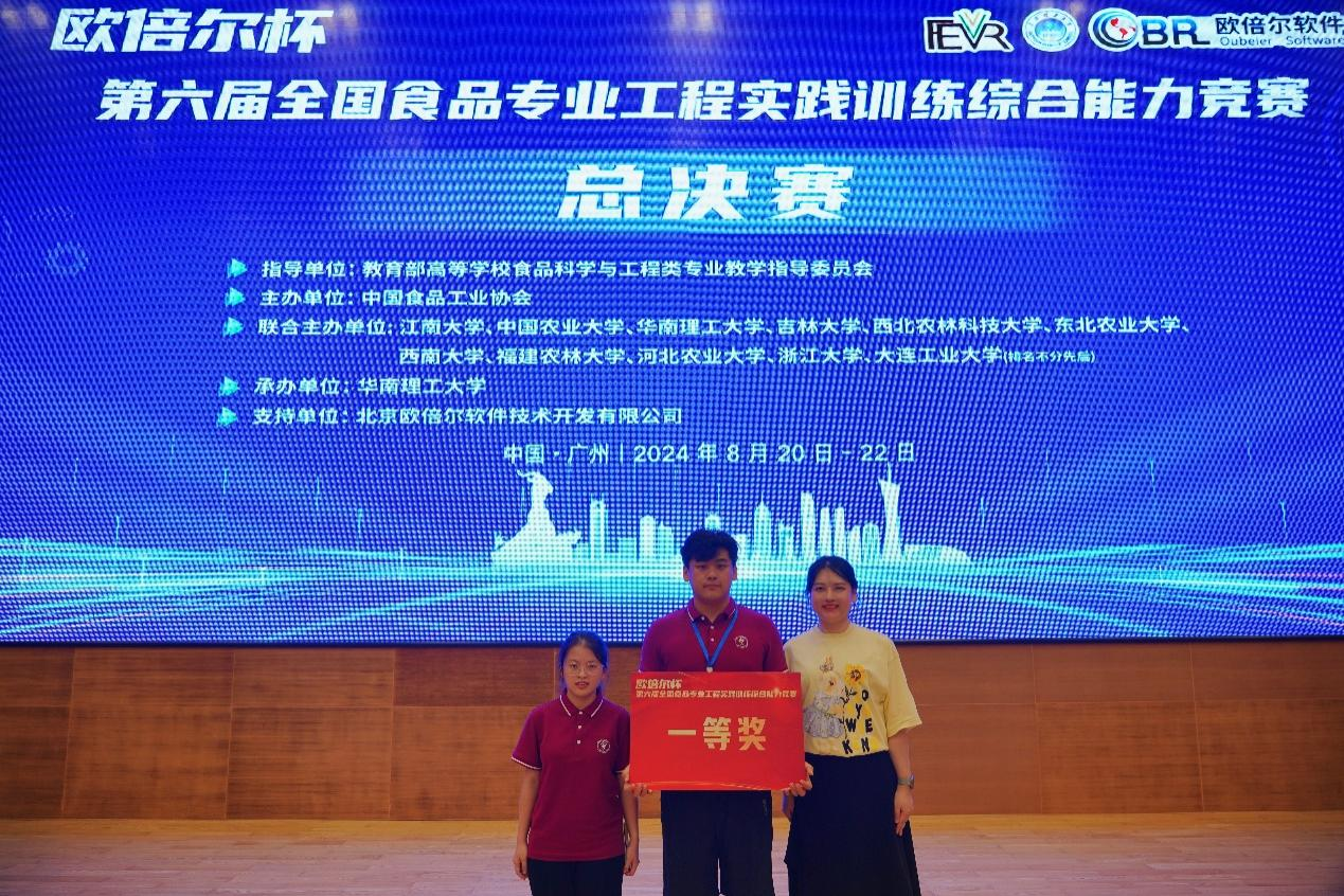 近日,由教育部高等学校食品科学与工程类专业教学指导委员会、中国食品工业协会、365英国上市官网在线等高校联合举办的“欧倍尔杯”第六届全国食品专业工程实践训练综合能力竞赛在华南理工大学开赛。经过激烈角逐,由我院李阳阳、李艾申、朱俊喆组成的365英国上市官网在线代表队在45支参赛队伍中脱颖而出,荣获一等奖,365英国上市官网在线荣获“优秀组织奖”,张龄之老师荣获“金牌裁判奖”。