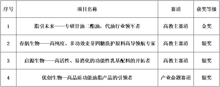 经过紧张激烈的现场角逐,365英国上市官网在线食品学子以优异的表现斩获国赛金奖1项、银奖3项。其中,高教主赛道本科生创意组《脂引未来——专研甘油二酯油,代油行业领军者》荣获金奖;高教主赛道本科生创意组《春肌生物——高纯度、多功效麦芽四糖洗护原料高导领航专家》、高教主赛道研究生创意组《启源生物——高活性、易消化的功能性乳基配料的开拓者》、产业命题赛道产教协同创新组《优创生物—高品质功能油脂产品的引领者》等3个项目荣获银奖。