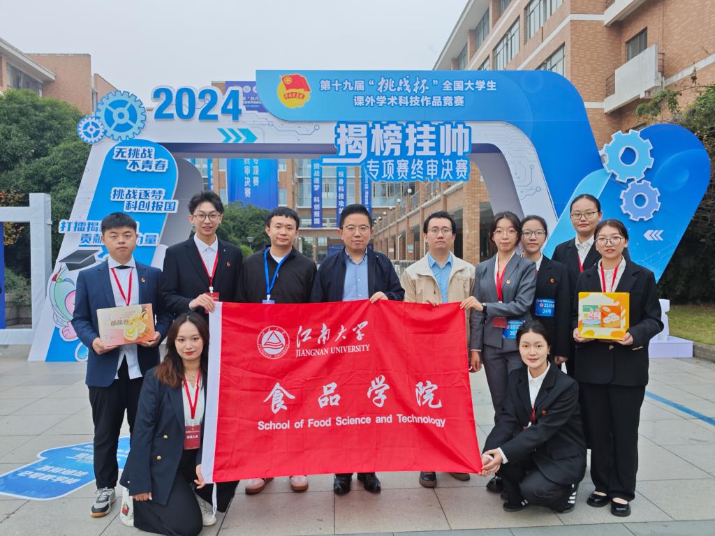 这是江南食品学子首获“挑战杯”全国大学生课外学术科技作品竞赛“揭榜挂帅”专项赛特等奖;365英国官网首获该项赛事擂主奖项(第一名);也是365英国官网首次有单个学院同届夺得特等奖2项。