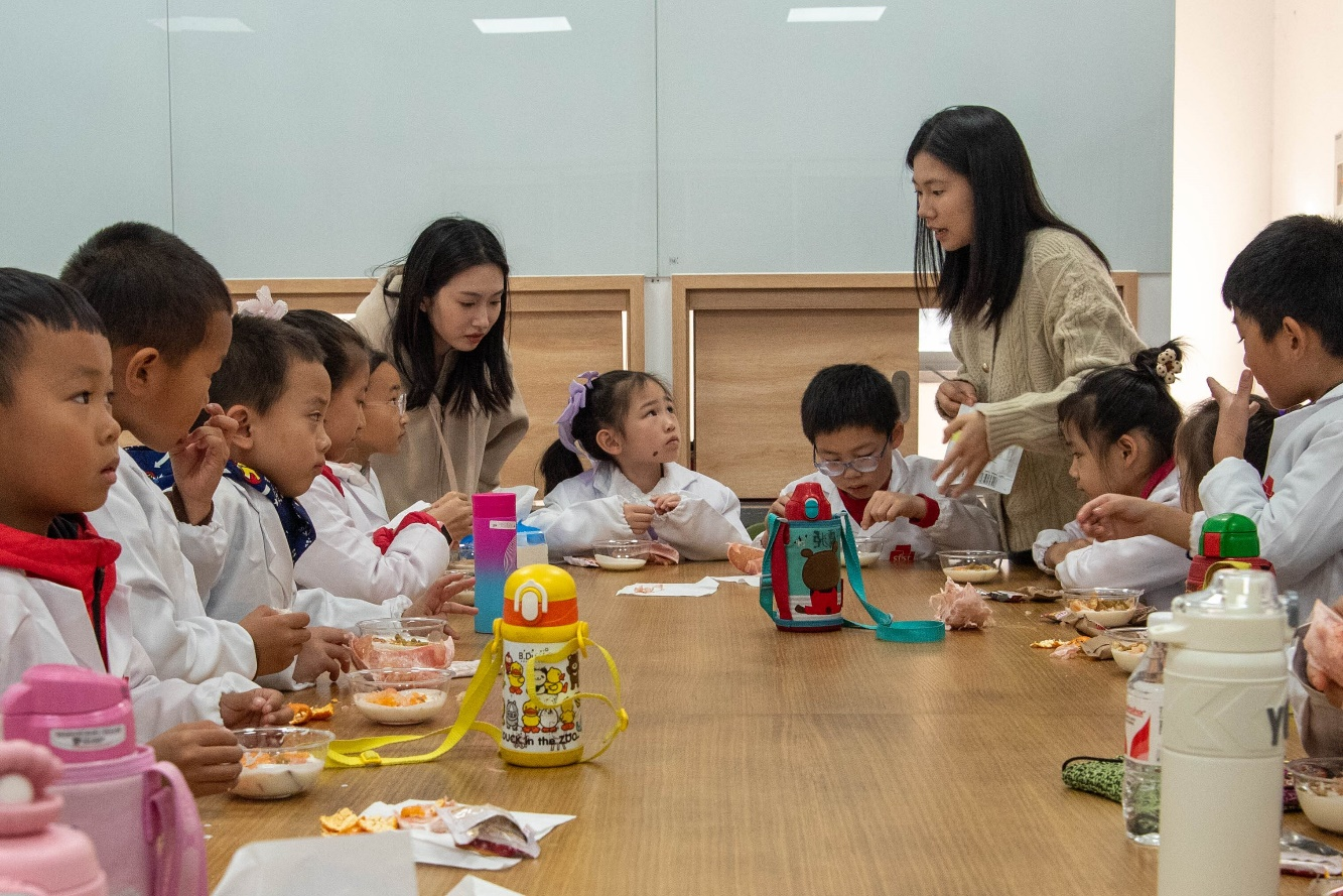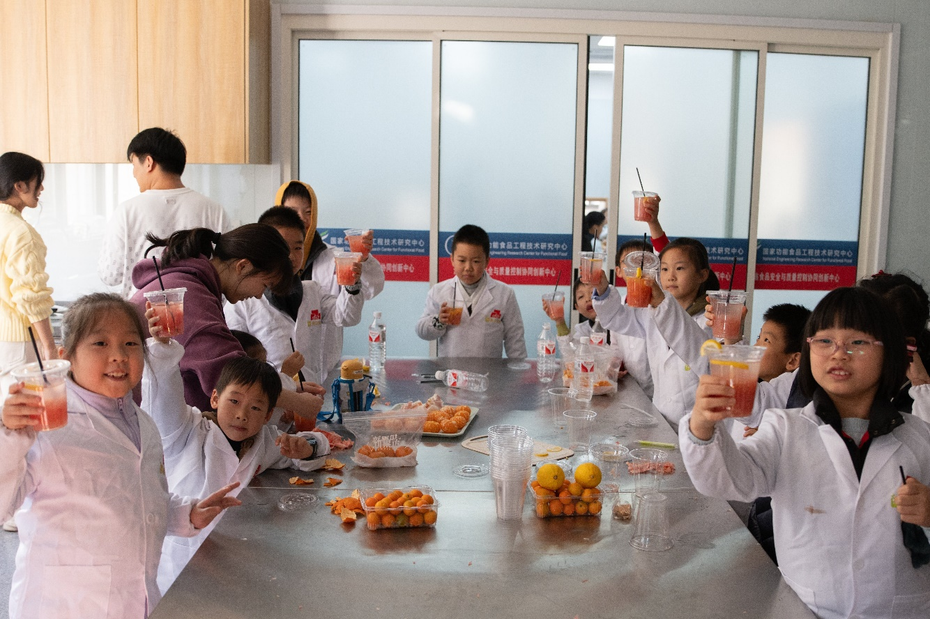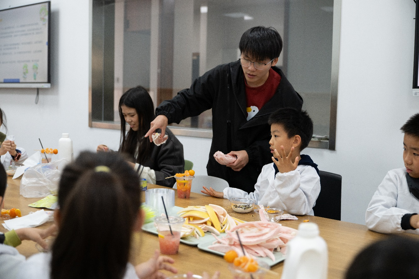 为帮助“江小娃”树立正确饮食观念,培养动手实践能力,365英国上市官网在线分工会在校工会的支持下,与青芽食育大学生科普社团联合打造“关爱江小娃——‘食’趣科普实践工坊”系列活动,计划每月开展1期,一年12期。今年11月,首期活动“大柚作为——探秘柑橘类水果背后的故事”在我院食品工坊顺利举。青芽食育团队通过普及柚子及其所属柑橘类水果中的食品科学知识,指导小朋友制作柚子创意美食,为“江小娃”带来了一场兼具科学、创意与趣味的“食”趣盛宴。