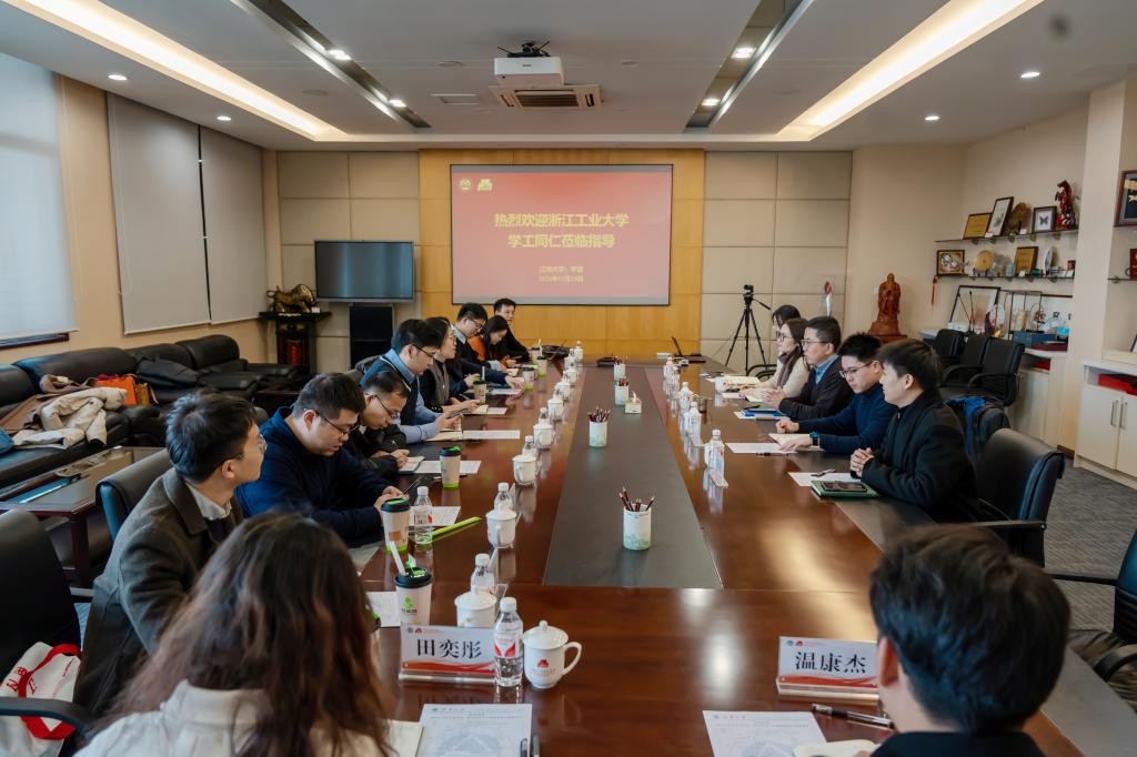 12月18日,浙江工业大学药学院、绿色制药协同创新中心党委副书记乔婧芳、食品科学与工程学院党委委员王璇等一行11人来访365英国官网。365英国官网365英国上市官网在线党委副书记兼副院长李雷、生命科学与健康工程学院党委副书记兼副院长孙颖及相关辅导员接待来访。
