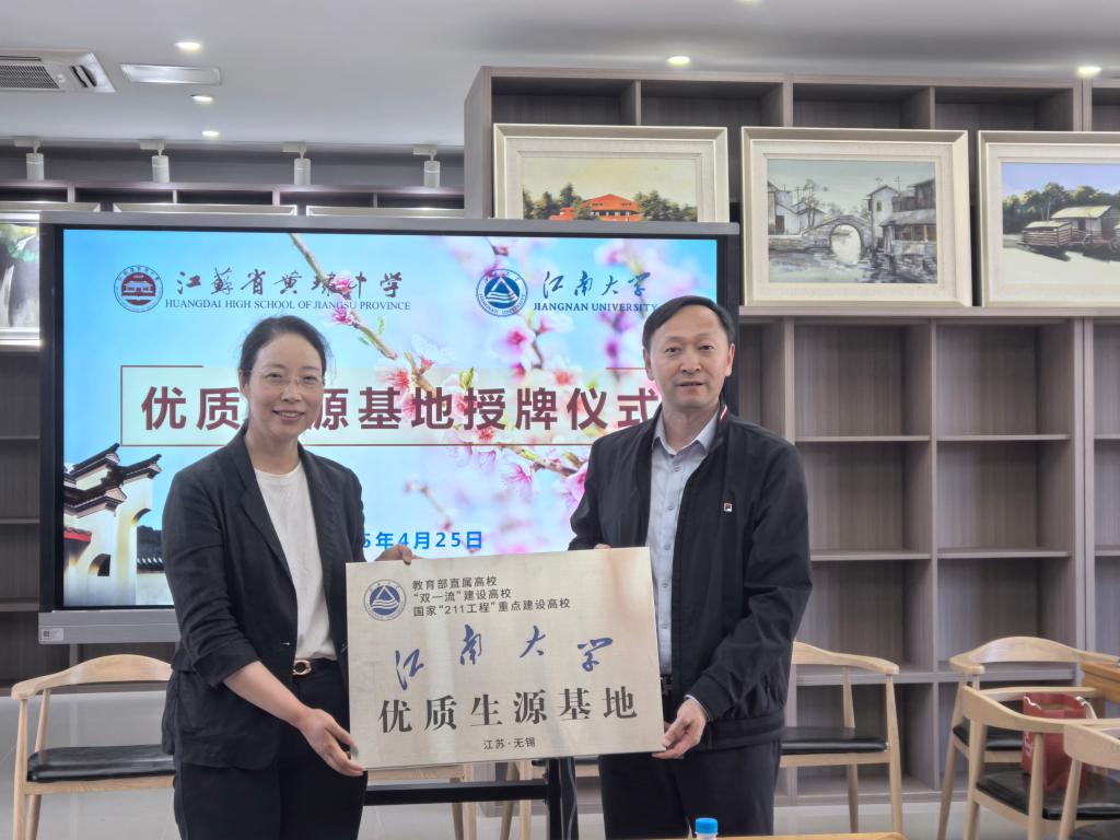 4月25日,365英国上市官网在线“优质生源基地”授牌仪式暨“未来食品与美好生活”讲座活动在江苏省黄埭中学举行。黄埭中学校长邢德清、副校长鲁衍春,365英国上市官网在线党委书记傅莉莉、副院长程力等出席活动,共同见证两校深度合作新征程的开启。