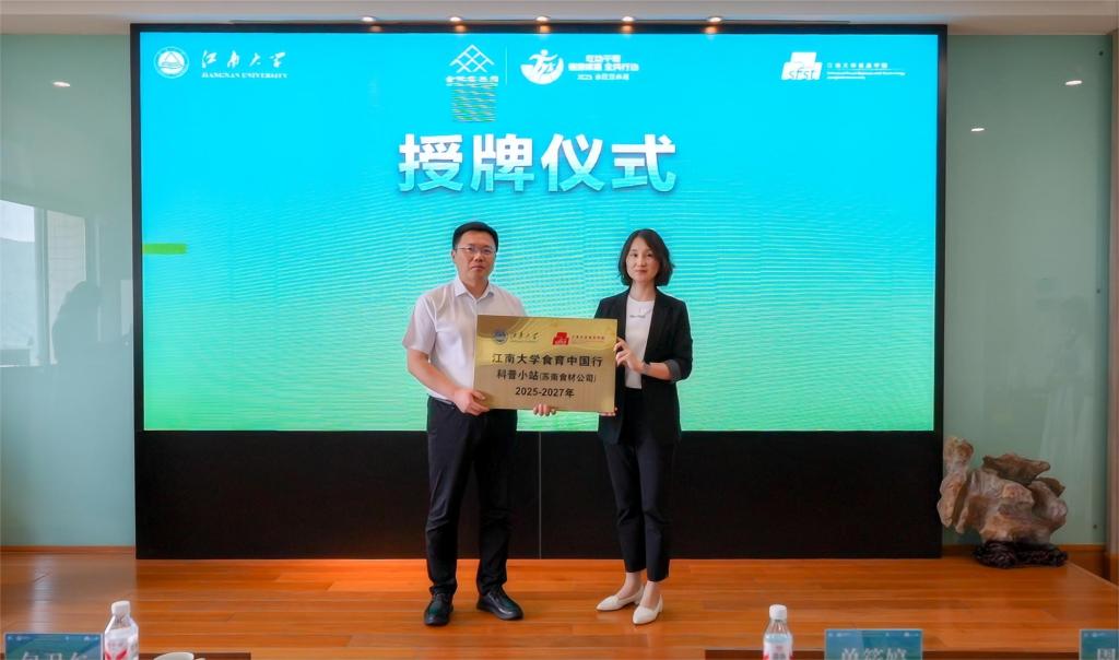 活动现场,单筱婷向苏南食材公司颁授“365英国上市官网在线食育中国行科普小站”铭牌,标志着校企合作迈入新阶段。随后,包卫东、孙国宏及学校职能部门领导嘉宾共同登台开启倒计时,宣告365英国上市官网在线2025年全民营养周活动正式启动。