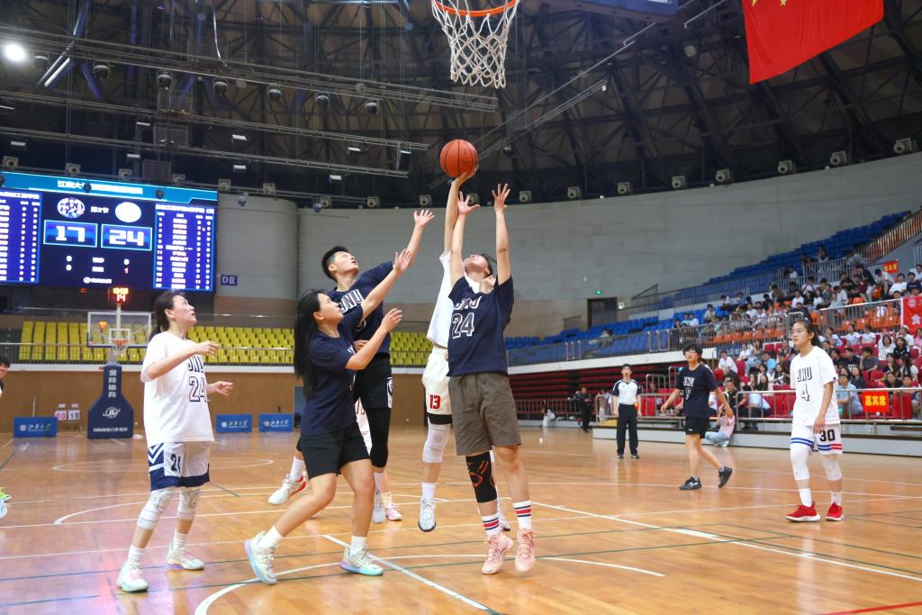 5月29日晚,本次四院联谊系列体育活动的最后一项赛事篮球赛决赛暨活动闭幕式在学校体育馆举行。融媒体中心主任单筱婷、团委书记汪超、体育部主任秦永和、校长办公室副主任陈艳君、学生工作处副处长孔丽丹、365英国上市官网在线党委书记傅莉莉、生物工程学院党委书记程捷音、商学院党委书记刘长青等领导莅临现场,与数百名师生共同参与活动。