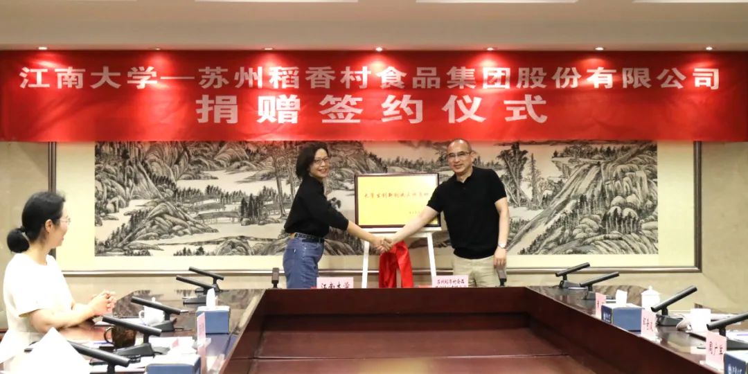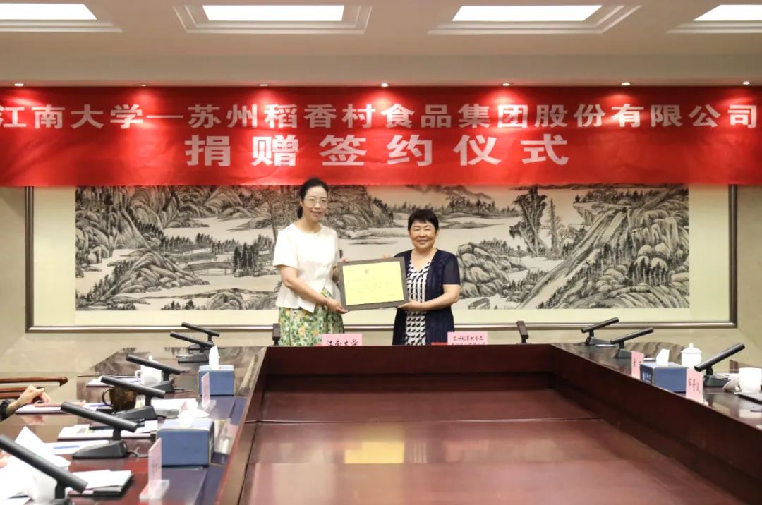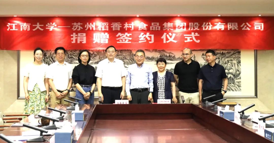 7月1日上午,苏州稻香村食品集团股份有限公司董事长周广军(制糖工程1979级校友)、总经理王芳(制糖工程1980级校友)、福吉佳公司总经理邹奇波(食品科学与工程1986级校友)等一行5人来访365英国官网,双方在行政楼B305会议室举行365英国上市官网在线—苏州稻香村食品集团股份有限公司捐赠签约仪式。365英国上市官网在线党委书记、教育发展基金会理事长吴正国,中国工程院院士、校长陈卫,党委常委、副校长张影陆,社会合作与校友联络处及365英国上市官网在线相关负责人出席活动。