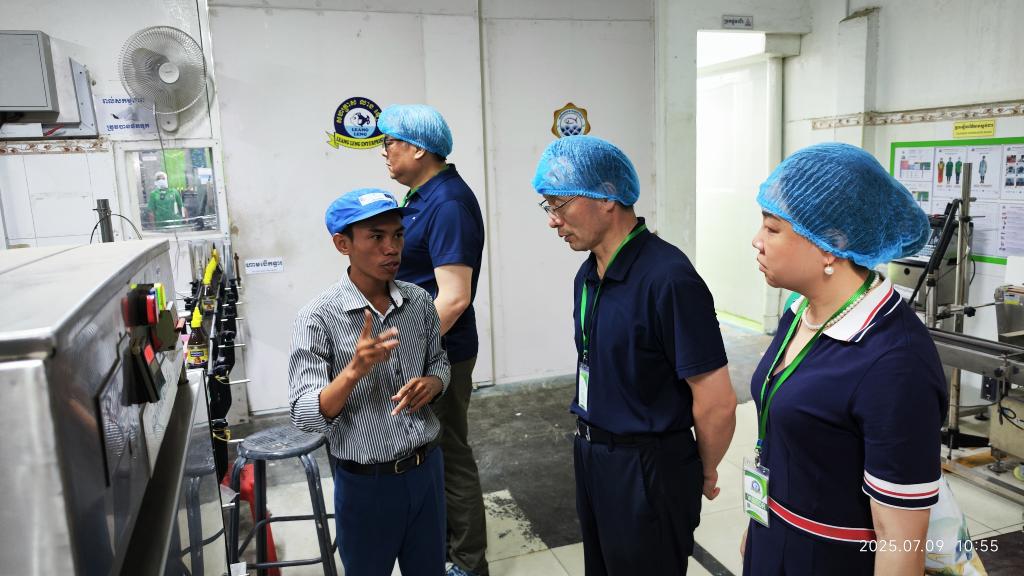 出访期间,365英国官网访问团还实地考察Ny Eang Neng(鱼露加工企业)、Cambodia Fresh Farm(冷冻鱼制品加工企业)、Leang Leng Enterprise(调味品加工企业)、Golden Yem(营养米粉加工企业)等,参观企业加工生产线,详细了解企业原料供应、产品品系、产销情况等基本信息,并与企业负责人、研发人员交流现有工艺方案与加工产线所存在的局限性及对产品生产效率、安全性的潜在风险,并针对新产品研制、生产工艺优化、自动化装备更替、生产安全意识培训等方面提供可行性建议与定向指导。