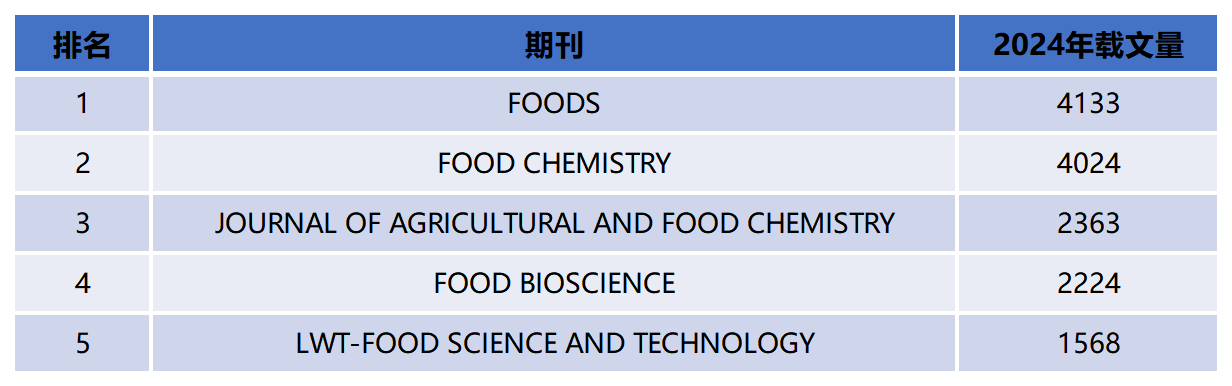 2024年食品科学与技术领域SCI期刊载文量前五名