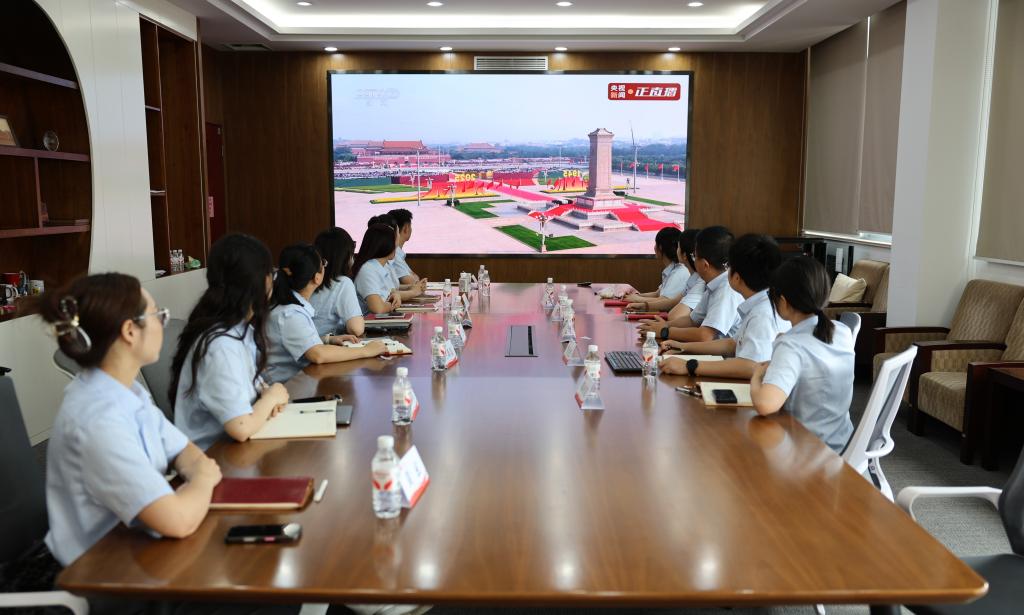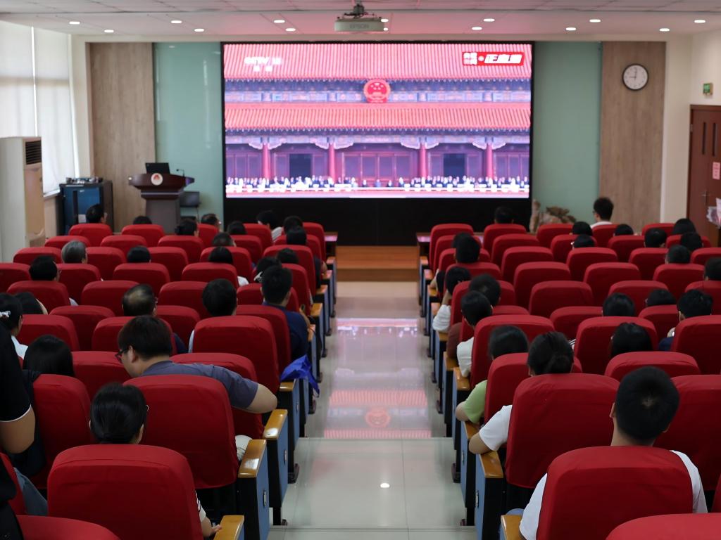 9月3日,纪念中国人民抗日战争暨世界反法西斯战争胜利80周年大会在北京天安门广场隆重举行。上午十点,学院在D912、D925开设直播会场,组织学院党员师生集中观看大会盛况。