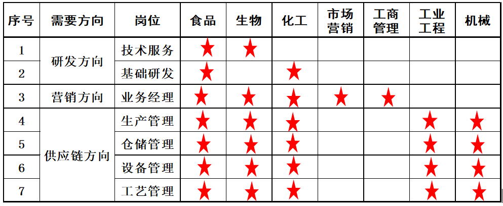 1.专业要求:食品、生物、化工、市场营销、工商管理等相关方向