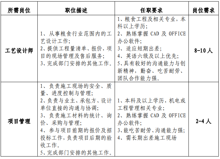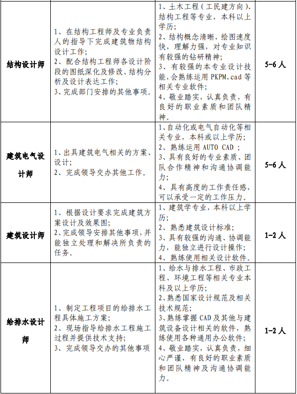 三、岗位需求及任职资格