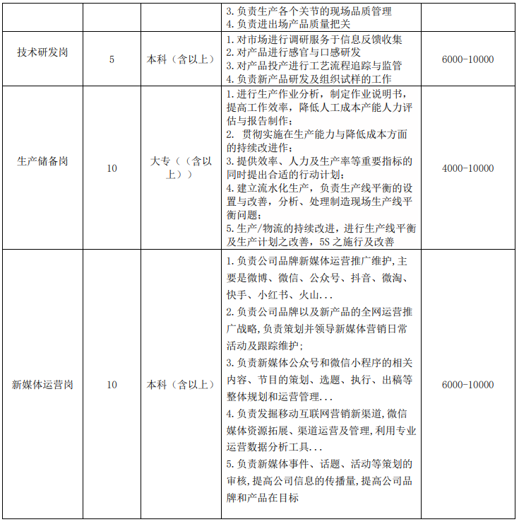 ➢ 有意从事食品行业,具有现代知识、现代思维、现代阳光的新型 管理性、技术性人才