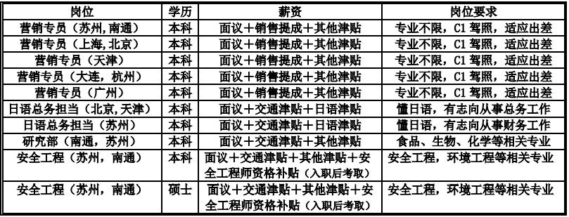 本公司日本食研控股有限公司自 1971 年创业以来,取得了稳定的成长。在这 40 多年里,我们以在饮食文化 层面上为社会做出贡献为目标,率领所有公司成员在混合调味料的研究,制造,销售上不懈努力。随着饮食文化 的逐步变迁,本公司的事业领域不再只限于日本国内,也开始朝着海外发展迈进。 现在,作为“世界饮食文化的开拓者”,为了向全世界的人们提供“更美味,更方便”的饮食,自 2007 年苏 州食研登陆中国以来,我们每天都在不断努力。 为了给大家呈上活用于日本国内特有技术的混合调味品的“美味”和“便利”,应对中国国内不断扩张的市 场,我们于 2007 年 1 月在江苏省苏州市成立了苏州食研食品有限公司,于 2016 年 6 月在江苏省南通市设 立了食研食品(中国)有限公司,南通工厂已于 2018 年 10 月在南通开发区竣工并运转。公司主要从 事日式调味品的生产和销售,客户遍布全球。除南通总公司之外,我们在北京、大连、苏州、上海、广州、 杭州、天津都设立了分公司。在深圳、武汉、青岛等地也开始了分公司设立的筹备工作。入职后的工作地点,会 按照个人的意愿进行分配。以后随着市场的不断扩大,我们会逐步在各大城市相继成立新的分公司。诚挚地邀请 各位同学的加入。