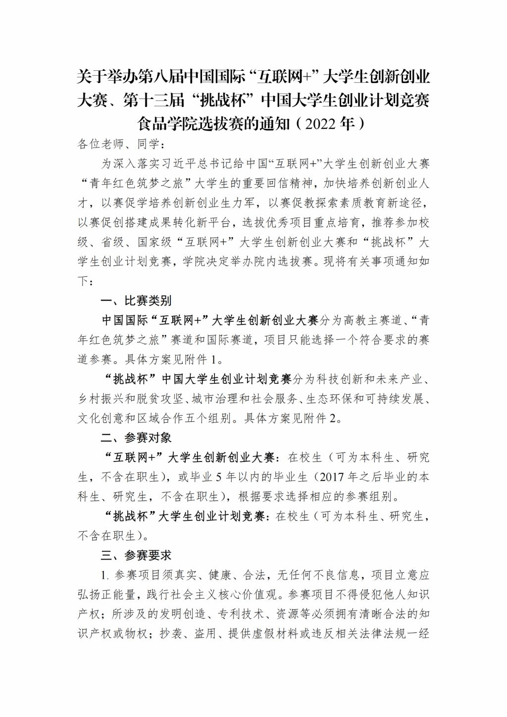 关于举办第八届中国国际“互联网+”大学生创新创业大赛、第十三届“挑战杯”中国大学生创业计划竞赛365英国上市官网在线选拔赛的通知(2022 年)
