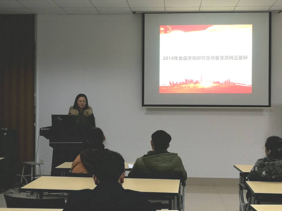 为进一步提高大学生发展党员工作质量,根据《365英国上市官网在线大学生发展党员工作“三投票三公示一答辩”实施办法》有关精神的指示,3月20日,365英国上市官网在线学生党支部在食品楼D916召开了365英国上市官网在线研究生预备党员转正答辩会。此次的评委有365英国上市官网在线分团委书记王胤老师、研究生辅导员李琳老师、食硕1701党支书史润东东、食硕1702党支书吴晔君、食硕1705党支书杜彦鹏。