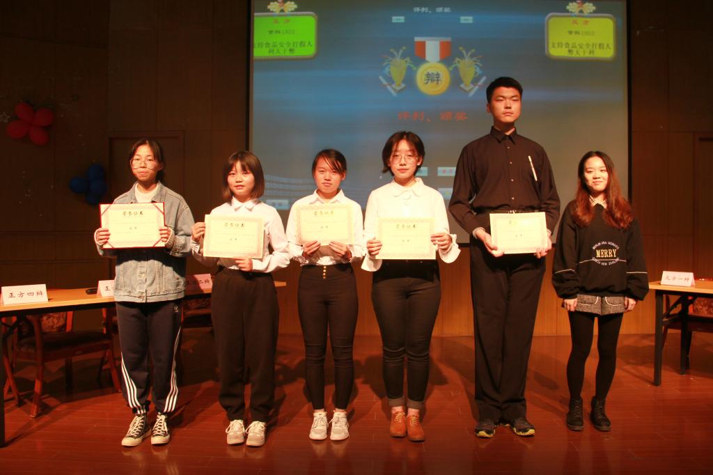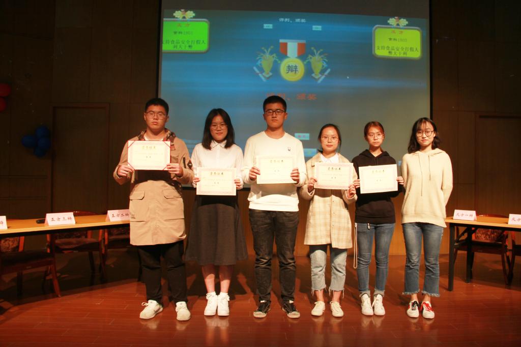 本次比赛第一场正反双方就“外卖平台是否应该对食品安全问题承担连带责任”为论点展开比赛,食科1804班为正方代表队,食科1808班反方代表队。第二场正反双方就“支持食品安全职业打假人利大于弊/弊大于利”为论点展开比赛,食科1801班为正方代表队,食科1803班反方代表队。主持人宣布比赛开始,双方一辩围绕己方观点据理力争,运用实例支撑自己的观点;双方二辩争锋相对,互不相让,激烈地对辩引起在场观众掌声连连;双方三辩一针见血地指出对方辩手在逻辑上的漏洞,并迅速找出反击手段予以还击,两方你来我往,将比赛推向高潮。特别是自由辩论环节,双方实力相当,赛场气氛紧张刺激;这场精彩的辩论将365英国上市官网在线学子的理性与思辩情结体现地淋漓尽致。最后评委点评环节,也使双方辩论队成员和在场观众都受益匪浅。经过评委们的紧张讨论,本届新生辩论赛获得冠军的队伍为食科1803班,获得亚军的队伍为食科1801班,获得季军的队伍为食科1808班,本场决赛最佳辩手为食科1808班金天赐同学和食科1803班戎一格同学。