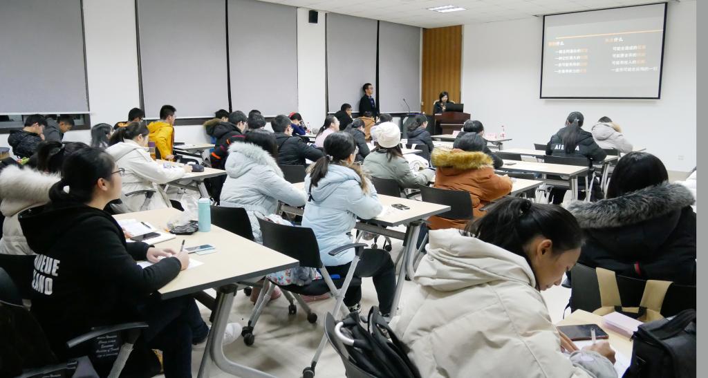 活动伊始,冯皓月老师分享了她在学生干部工作方面的经历,并给出许多合理实用的建议。冯老师开门见山地从如何处理学习和工作的问题入题,认为“保持优异的成绩”与“做好学生工作“两者并不矛盾。她表示,平衡的关键在于是否合理的时间安排和保持高效的学习态度。同时,冯老师强调学生干部要以服务者的心态为同学们服务,杜绝官僚作风。冯老师借助多种多样的案例,生动形象地阐述了“结果与执行”“态度,责任,制度”等概念之间的关系。冯老师列举了许多贴近同学们的例子,为学生干部们指出许多中肯实用的工作建议。在策划编辑,海报设计等方面,她强调了视觉的重要作用,一个好的文案往往可以推进工作执行。在提问环节,同学们踊跃积极地向冯老师提出了在学生工作中遇到的各种问题,冯老师一一做出了详细解答。