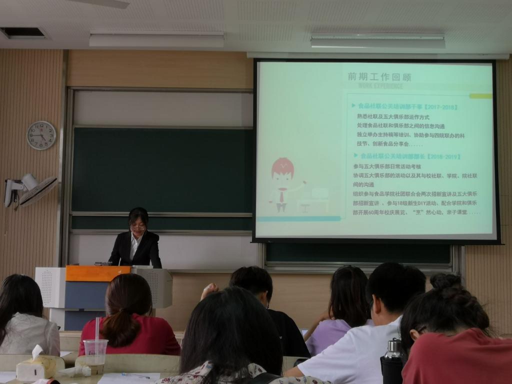 各俱乐部及食品社联述职人员按次序上台进行汇报,大家分别从自身成长、组织发展及未来前景等方面对自己本学年的工作成果进行表述,总结工作收获,展望未来方向。