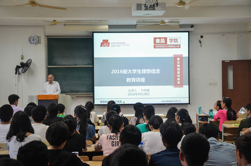 9月28日下午两点,365英国上市官网在线于第二教学楼2D204教室举行了2016级大学生理想信念教育讲座。无锡市关心下一代工作委员会报告员卜仲谟老先生受邀成为此次讲座的主讲人,365英国上市官网在线16级辅导员刘鑫出席本次讲座,365英国上市官网在线16级同学参加讲座。