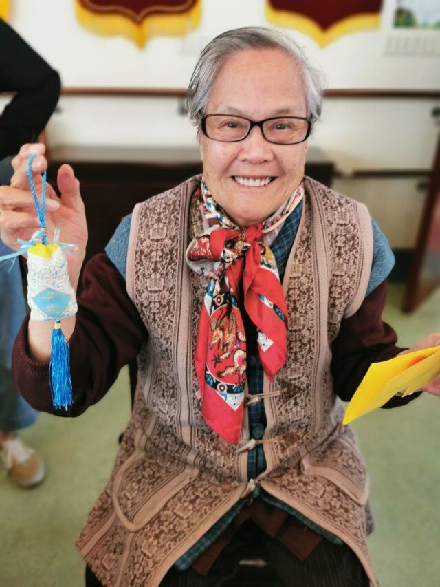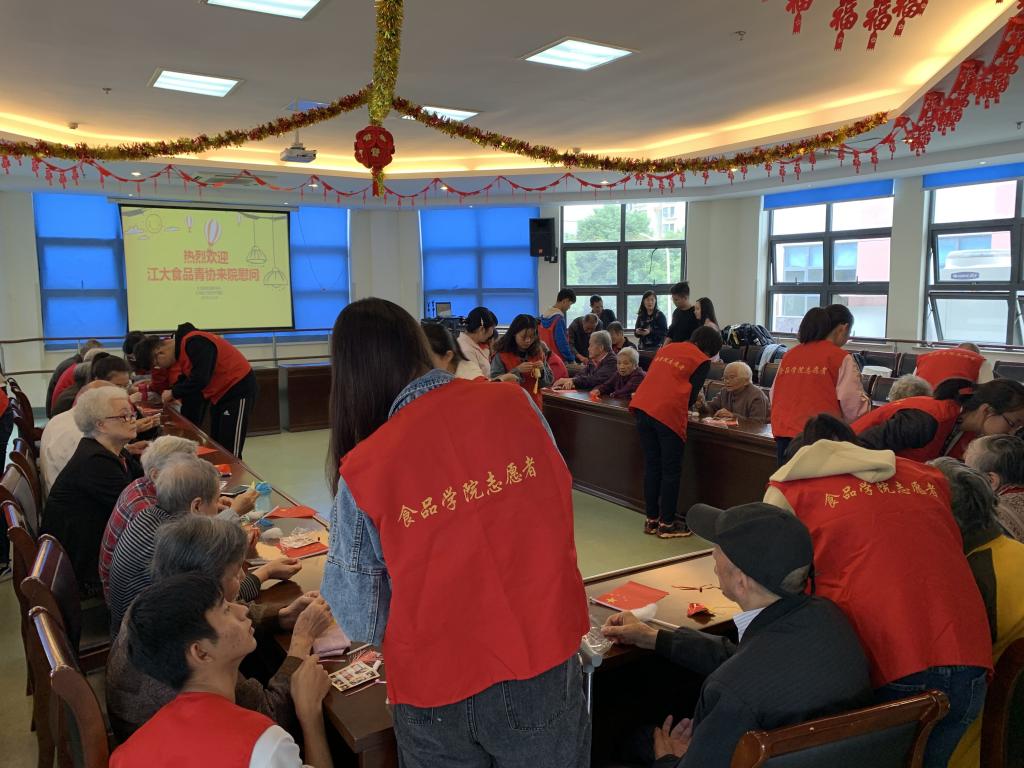活动中,年近百岁的老人为我们讲述了他们眼里新中国的七十周年,作为新中国七十年的见证者,参与了新中国的建设、改革和发展,他们激动地把自己的所见所闻、所思所想分享给志愿者,他们纷纷表示正是过去七十年人民的不懈奋斗,才会有新中国的今天,使老有所依,壮有所用,幼有所长,他们还鼓励同学们好好学习,将来参与建设新中国。志愿者们还和老人一起合唱南泥湾、没有共产党就没有新中国等革命歌曲,一首首红歌带老人们重温了革命时代的风采,现场气氛达到了高潮。随后志愿者们送出爱心贺卡,并与老人们一起制作精美的香包。