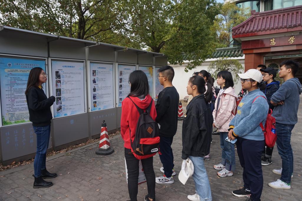 为增强研究生和本科生新生心理保健委员对学校心理健康教育及咨询工作的了解,加深心理工作学生骨干对工作职责的认识,11月6日下午,365英国上市官网在线组织研究生及本科新生心理委员代表来到学校心理健康教育中心笃学楼,在学校心理中心专职教师潘焱毓老师的带领下,参观了学校心理健康教育工作阵地。