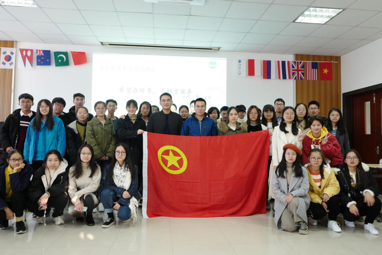 2019年12月9日,适逢“一二·九”运动84周年之际,食科1905团支部在食品楼D916开展了第三期“团支书说团课”,活动以“希望在转角,不轻言放弃”为主题,旨在学习“一二·九”运动中青年学生在混乱年代不放弃,勇敢拼搏的精神。本次活动邀请19级辅导员杨光宝、班主任邢俊杰和副班顾桐羽出席,团支书白德华同学主讲,团支部全体成员到场参加。
