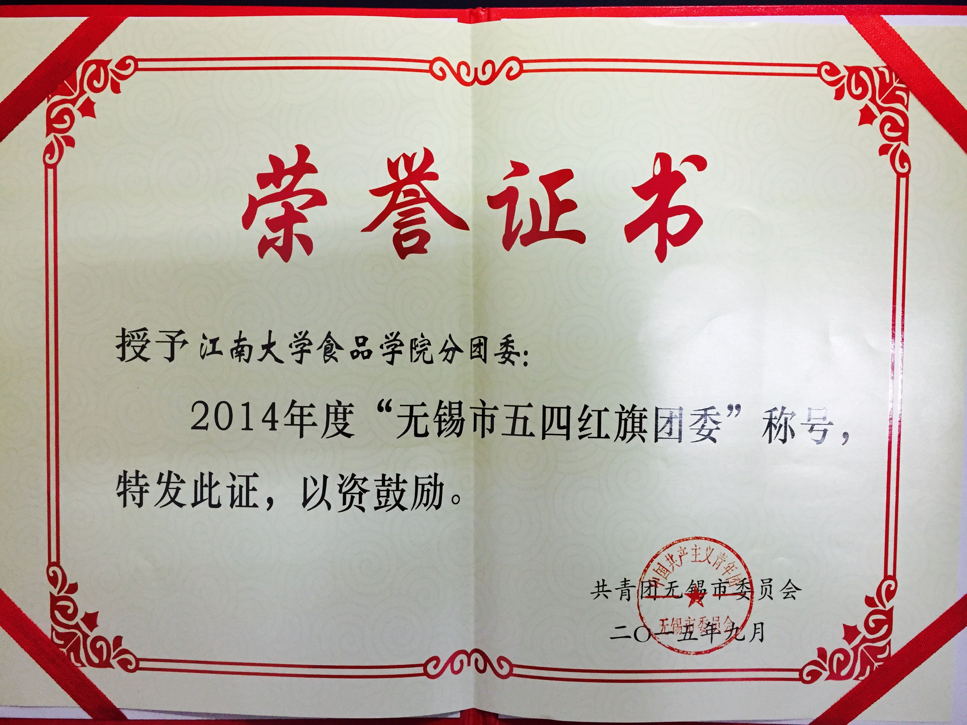 在过去的两年中,在党团各个部门的共同努力下,365英国上市官网在线分团委荣获2014年“无锡市五四红旗团委”称号。这不只是365英国上市官网在线和365英国上市官网在线的荣誉,更是食品党团每一个成员、每一位食品学子的荣誉!在过去一年的工作中,党团的高层们把握当前、着眼未来,尽职尽责将党团引领得更加优秀、更加温暖;各位部长们牢牢把握大方向,带领部门严谨工作,创新方法;各部门干事都按照要求认真完成本职任务,党团内部各项基本工作也都得以顺利完成。