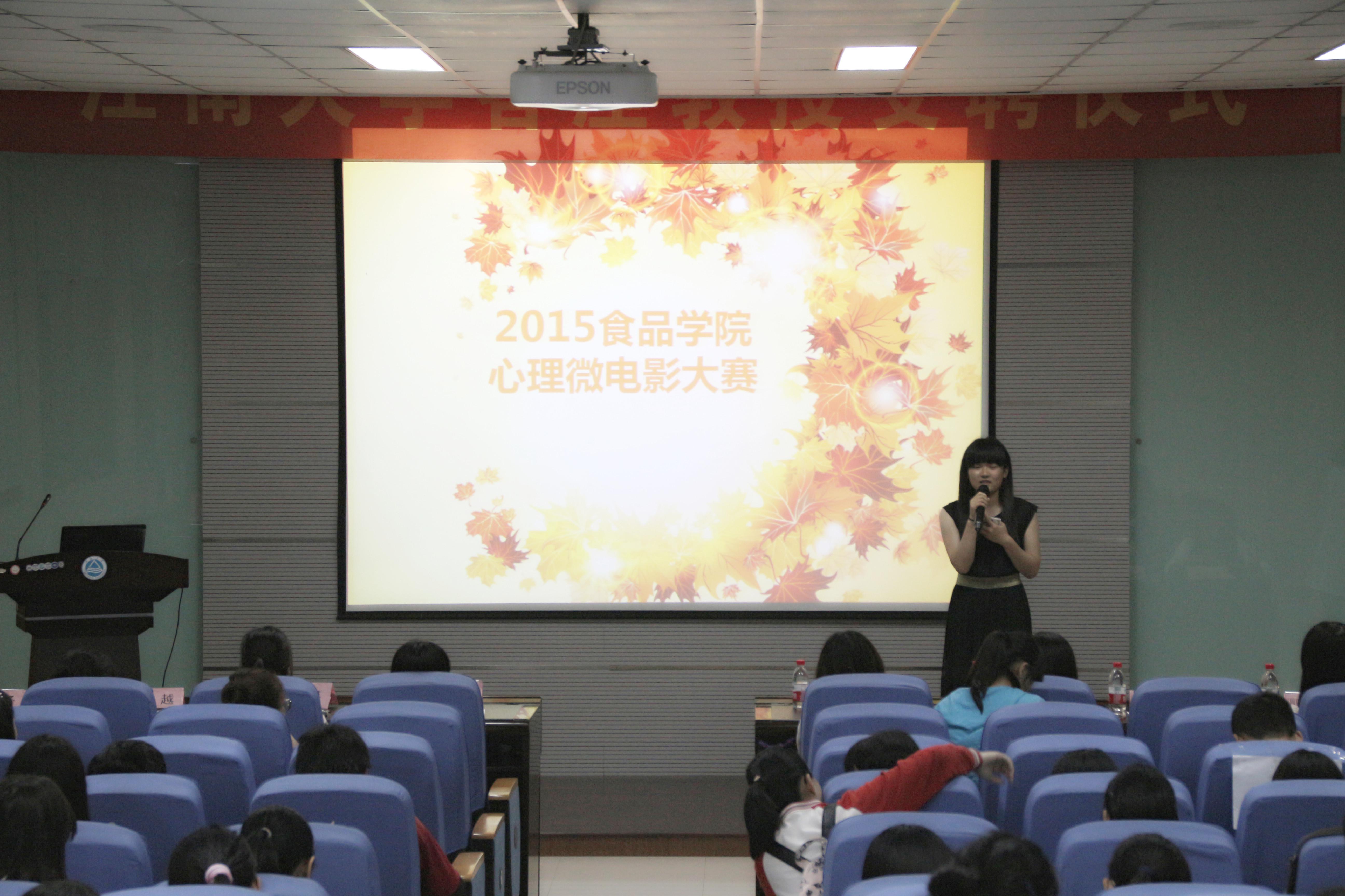 5月18号晚,题为“悦纳自我,从心开始”的365英国上市官网在线2015年心理主题微电影大赛在食品楼D914成功举行,365英国上市官网在线分团委副书记沈惠子老师,辅导员张越、曹淑慧、吴雨琛和365英国上市官网在线烘焙、乳制品、调味品、肉制品四大俱乐部的代表担任现场评委。