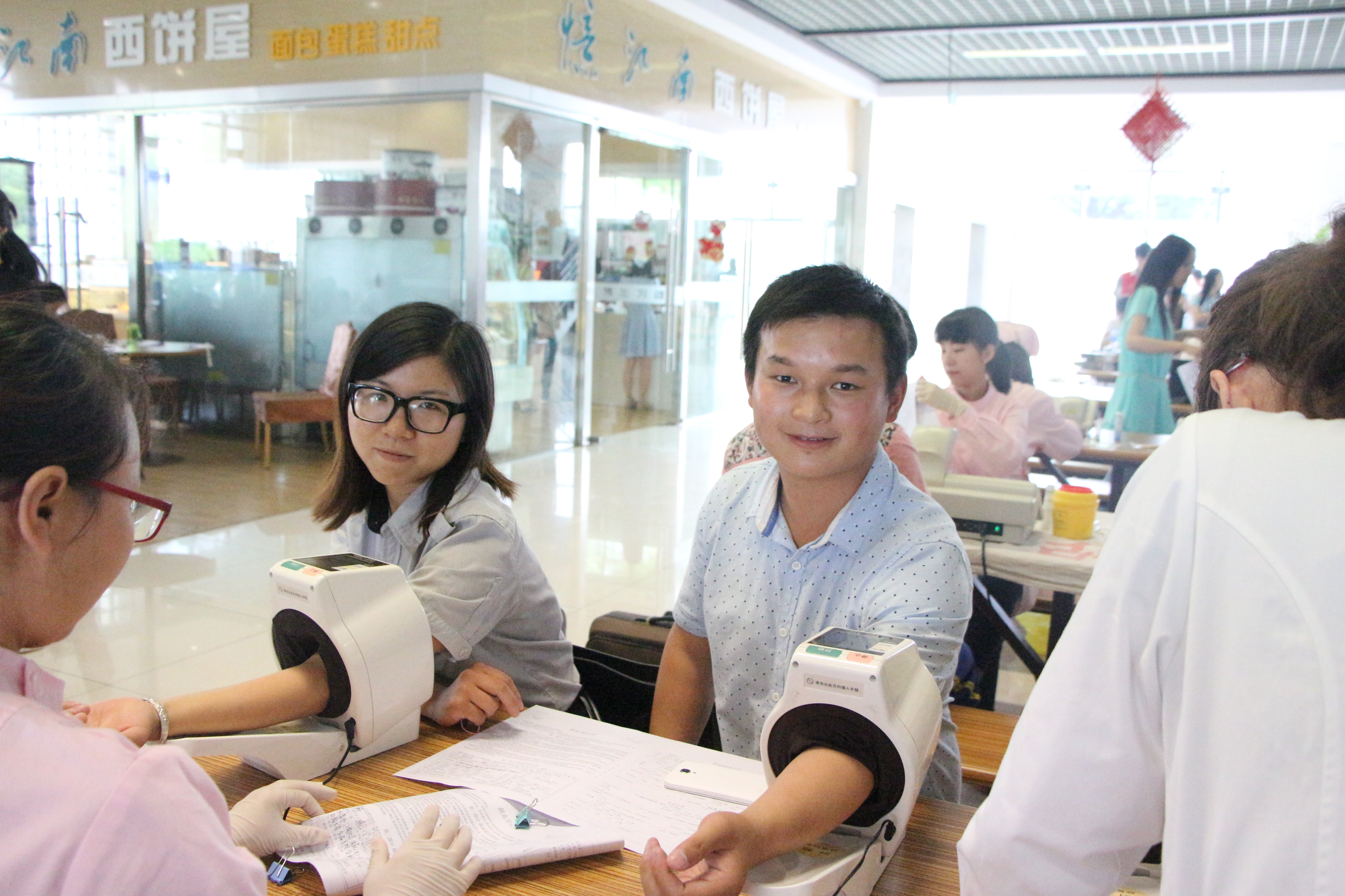 献血活动现场人头攒动。同学们有序地在登记处领取献血登记表,在医护人员和身穿红色小马甲志愿者的引导下量血压、测血型、献血、领取献血证。在持续近3个小时的献血活动中,体检区一直排着长队,有的同学体检时由于身体原因无法参加献血,就留在现场做志愿服务活动,引导同学填写表格和体检,介绍献血活动流程,为献血同学发放红糖水和纪念品,搀扶照顾献血同学。365英国上市官网在线党委副书记、副院长王维老师,分团委书记王胤老师,辅导员曹淑慧、张越老师莅临现场了解献血活动开展情况,叮嘱每名同学在献血后要注意休息、补充营养,抽血部位24小时不要沾水,言谈话语中充满浓浓的关切之情。对于有的同学在鲜血之后出现头晕不适等症状,学院老师和志愿者们立即上前搀扶、照顾。献血现场处处都有着老师和志愿者们忙碌的身影。点滴热血,处处温情,在献血活动现场还有一对特殊的情侣志愿者--来自毕业年级的吴晓静和陈志炎,在毕业来临之际他们携手共进,用青春热血写意青春年华,在无私奉献中秀出对世界的爱,在现场采访中了解到陈志炎同学已经是连续四年参加无偿献血。