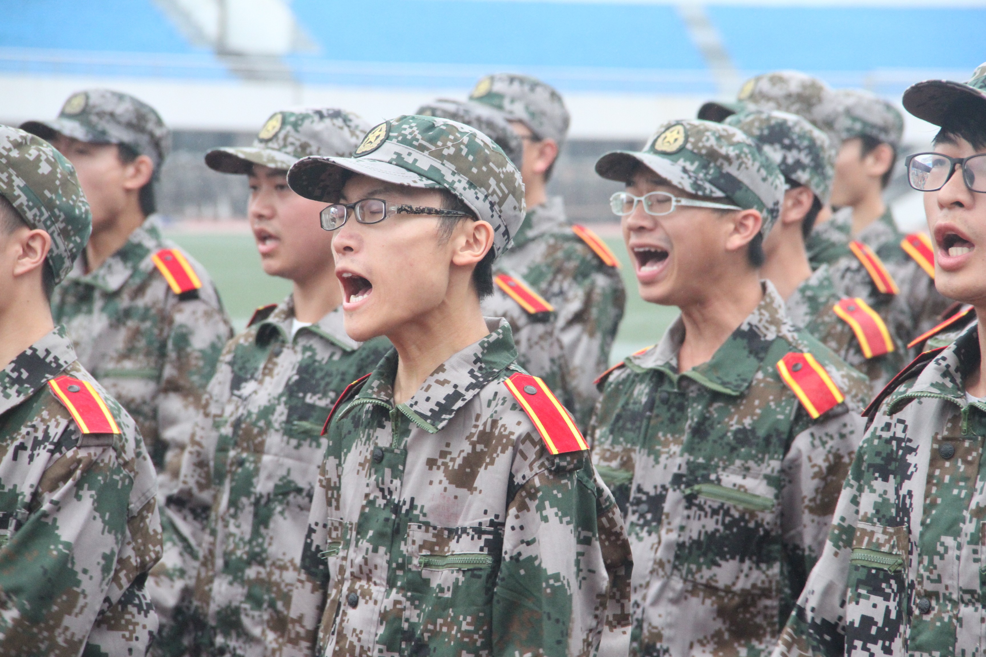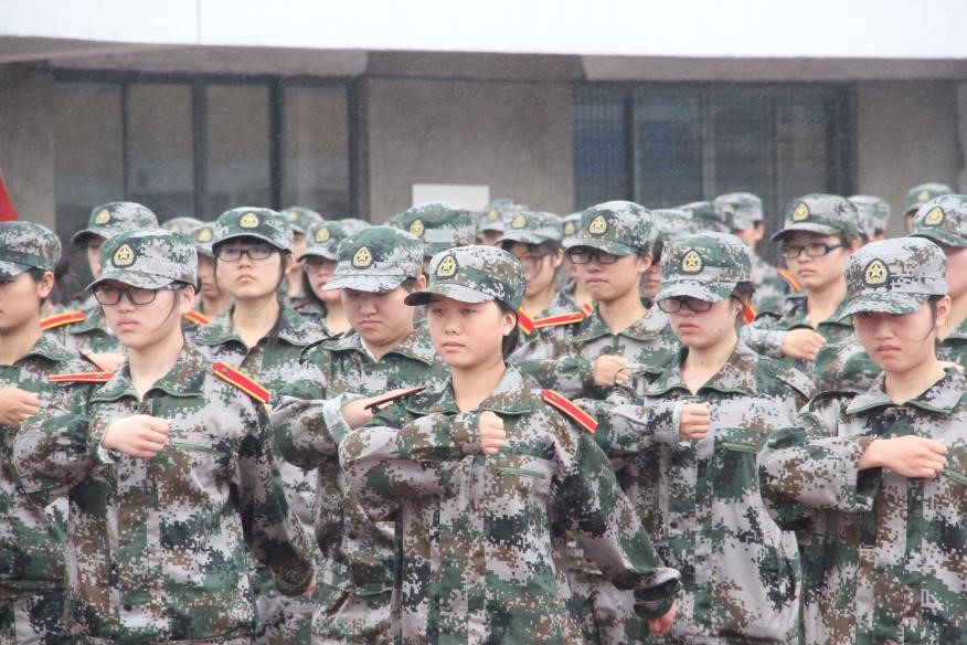 虽然在过去的两天里,天气并不是我们想象中的那样骄阳火,而是阴雨连绵,虽然少了烈日的炙烤,但同学们并没有因为下雨可以有更多的休息机会,仍然全身心的投入,在雨中严格要求自己,力求每个动作都做到位,做标准:站军姿时,同学们打着雨伞,如白杨搬笔直的身姿成为雨中一道靓丽的风景线;齐步走跑步走,讲究的是整齐划一,步调一致,同学们团结一致,通过默契的配合,在短时间内就能做到不错的程度;正步走,虽然累,但是同学们毫无怨言,坚持每次都做到高标准。休息时的歌声展现的是我们青春的活力。虽然阴雨不断,但我们热情不减。