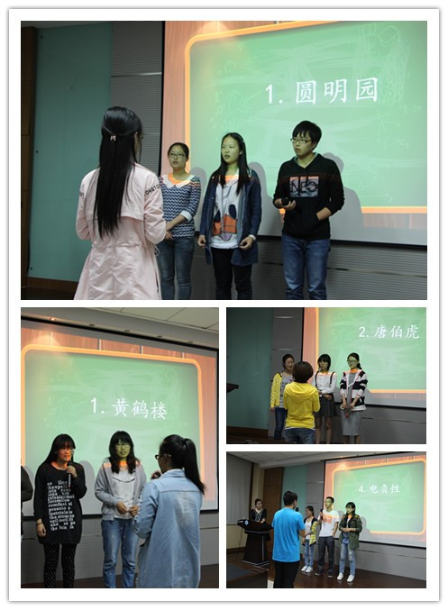 在“知识问答”的第一环节,各班代表队分别派出三位成绩优秀的同学轮流选题作答,以车轮战的形式滚动答题,现场氛围一片火爆。期间,千奇百怪的脑筋急转弯更是引得全场笑声不断。经过激烈的第一轮角逐,各班代表队成绩不分上下。在紧接着的“描述猜词”第二个环节,一人描述,三人猜,相比第一个环节,该环节难度明显上升。词库更是涵盖了历史、人文、化学、生物等多方面,高难度的、低提示的专业术语难倒了众多参赛选手,但也不乏反映迅速,思维敏捷的同学题题得分,博得阵阵掌声,科八代表队在第二环节的比赛中表现突出略微领先。在最终的“英语对对碰”环节中,同学们根据乱序的字母拼凑单词,新颖的答题模式使外国留学生也绞尽脑汁,百思不得其解。最终质一代表队表现优异,以四分之差夺得知识问答比赛的第一名。