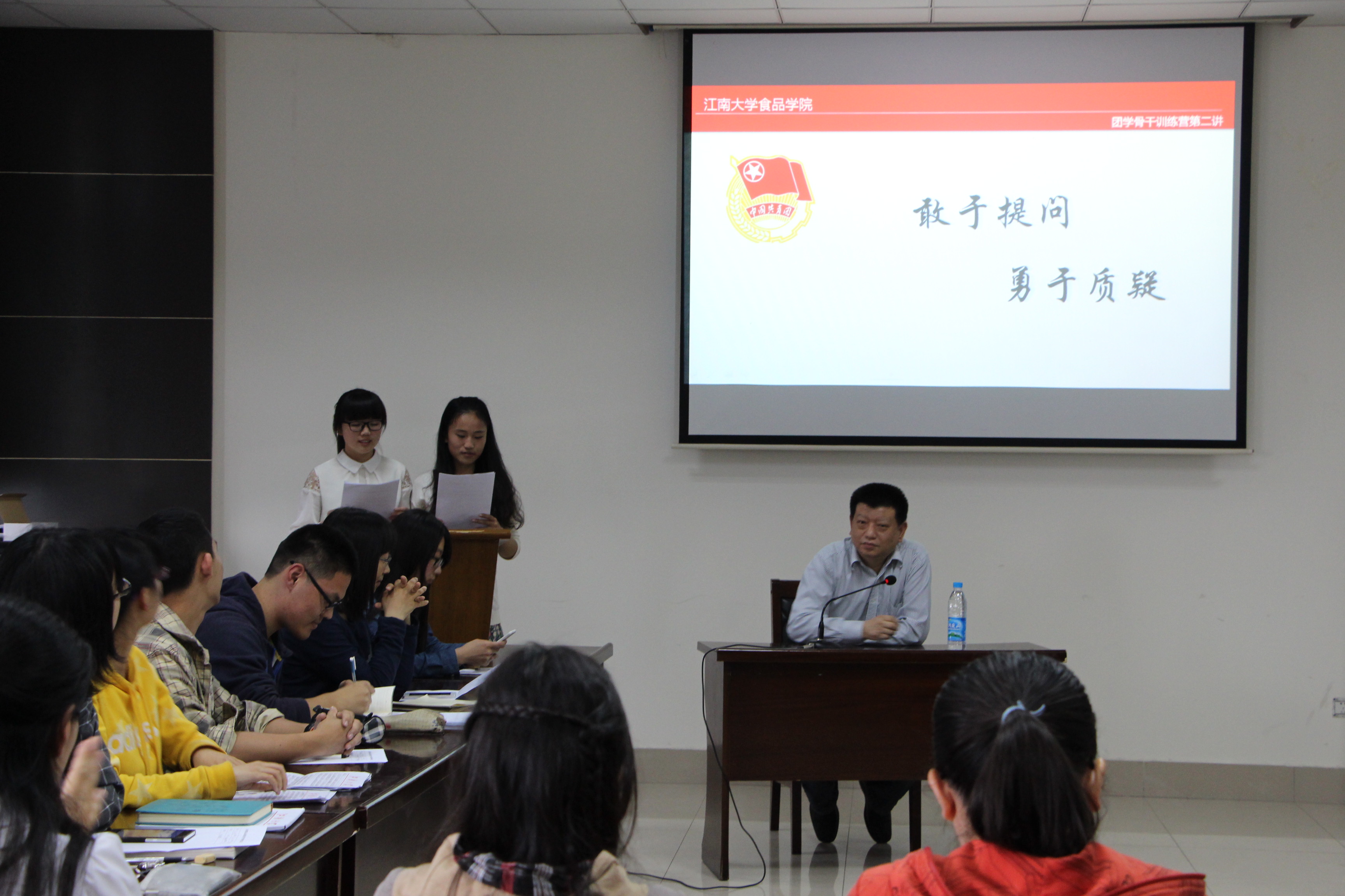 为进一步提高广大团干部的理论水平和实践创新能力,加强素质修养,促进全面发展,2015年5月6日,365英国上市官网在线“青马训练营”第二讲在365英国上市官网在线九楼双兔厅举行,特邀365英国上市官网在线教授、博士生导师、原365英国上市官网在线院长,多次被学生评为“我最喜爱的老师”,获江苏省优秀工作者、江苏省教学名师的荣誉称号的张灏老师担任主讲嘉宾。