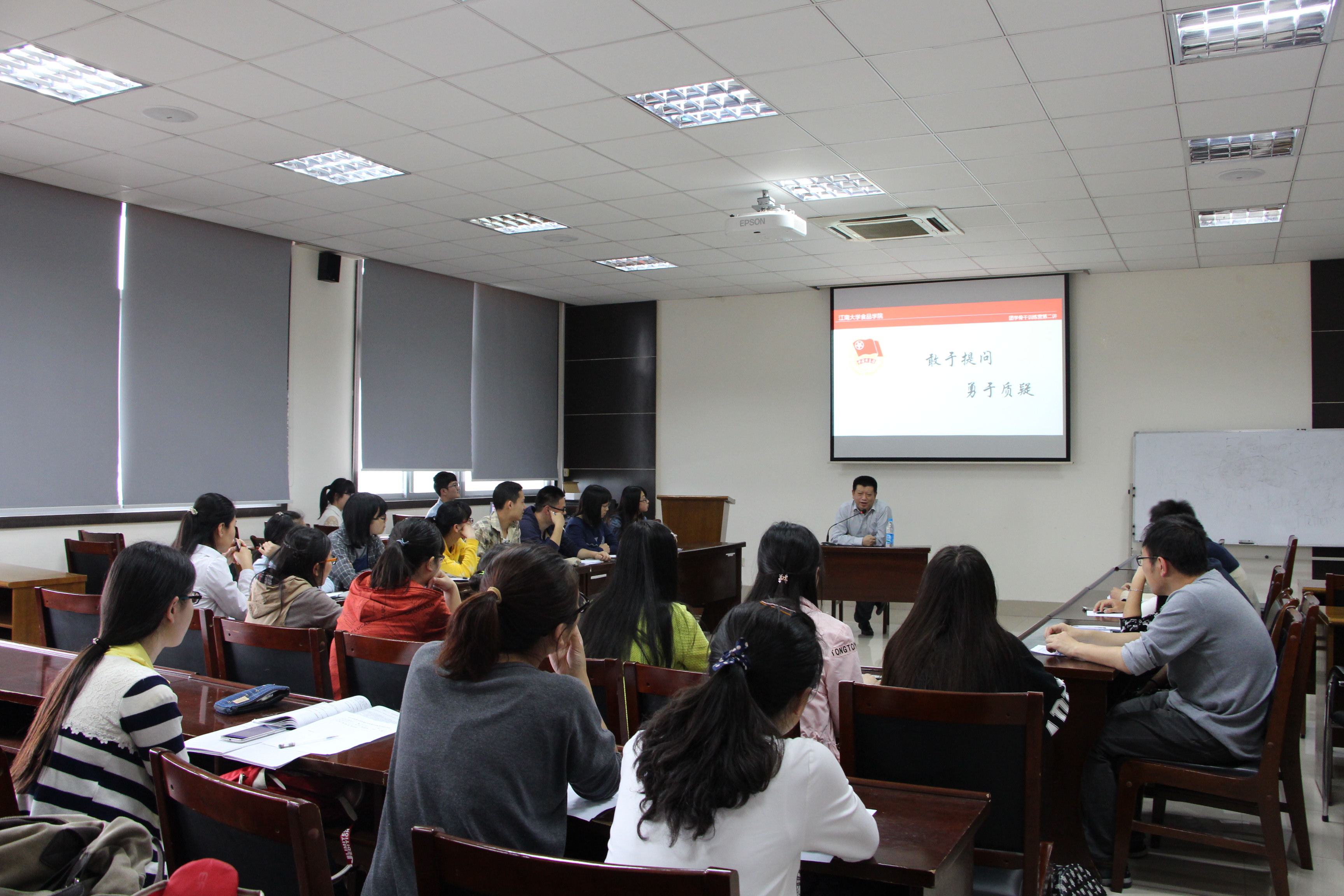 此次培训围绕“敢于提问,勇于质疑”的主题展开,张灏老师与同学们分享了自己的大学学习生活经历,告诉同学们“年轻人不要怕犯错,要敢于质疑”,并讲到年轻人要善于发现问题,提出问题,这是一切创造性活动的基础,也是富有创新精神的体现,质疑问难,既是学生主动求知、主动学习的生动体现,也是培养学生创新品质的重要途径。他引用“学贵有疑,小疑则小进,大疑则大进。”鼓励在场同学在日常学习中要积极提问,踊跃发言。张灏老师理论精辟,语言幽默风趣,讲解深入浅出,非常贴近学生生活,不时引起与同学们的阵阵笑声和热烈的掌声,大家纷纷踊跃提问、积极发言,张灏老师则用生动形象的事例为同学们解决困惑,与同学们分享交流自己的学习生活经验,赢得阵阵掌声。他对同学们提出,同学们要有志向,不要想获得自己努力之外的东西,解决问题时不要过虑。张灏老师生动幽默的语言屡次将现场的气氛推向高潮,最后,他指出现阶段作为一名更高学历层次的学生干部要明确了学习的目的和时代重任;进一步提高自身心理素质,坚定信念;不断学习,提升水平,完善服务。