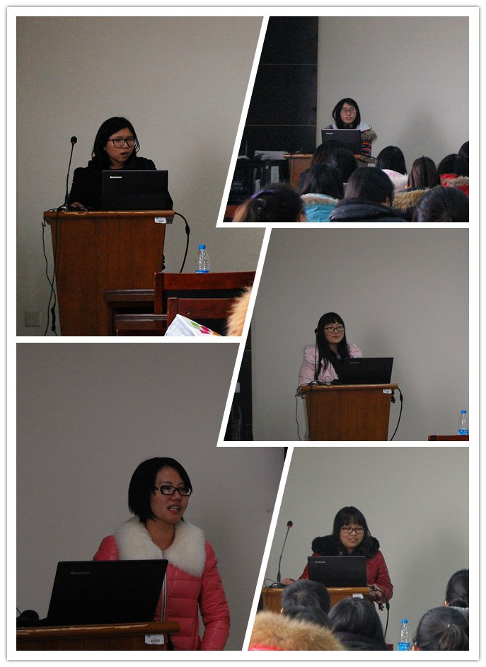 活动开场,主持人隆重地介绍了应邀而来的经验分享者。本场交流会邀请了保研到上海交大的吴晓静学姐,保研到本校已读研一的丁宁学姐,选择考研浙江大学食品专业的李苑学姐,以及考本校研究生的杨娟学姐。四位嘉宾都为本次交流会做了充足的准备,在随后进行的个人展示环节中侃侃而谈,信手拈来的妙句也让在座的同学们受益匪浅。