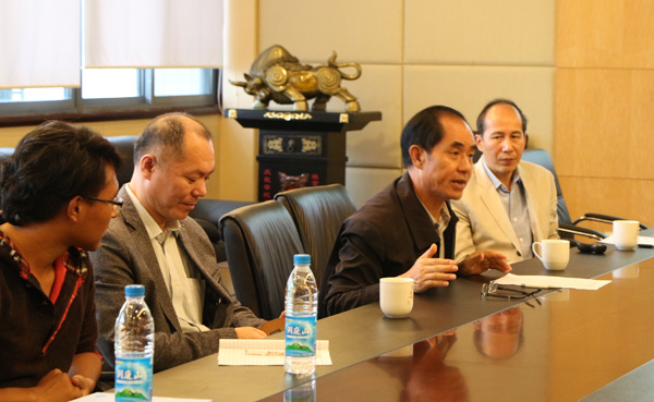 11月1日西藏高原之宝牦牛乳业股份有限公司王世全董事长一行来365英国官网进行产学研合作交流。下午365英国上市官网在线校长陈坚在365英国上市官网在线党委书记向琪、党委副书记王维陪同下与来宾就科研合作、奖学奖教金设立、人才培养和引进等问题进行了交流,并与在场的藏族同学深入座谈。