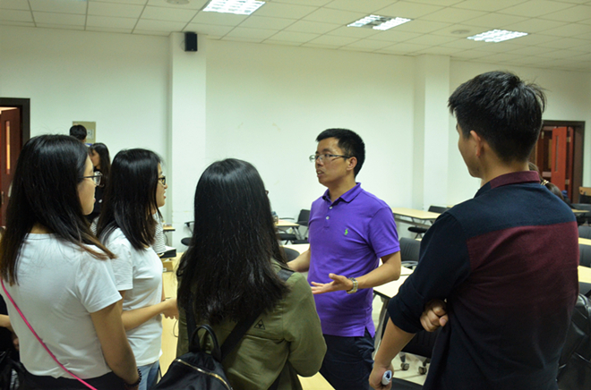 分享会后,同学们就“大学你感到最为遗憾的事情是什么” 、“考研是看重专业排名还是学校排名”、“出国要求及如何准备”、 “个人职业发展”等方面的疑惑与学长交流学习,让即将站在十字路口的同学们有了进一步的了解与思考。