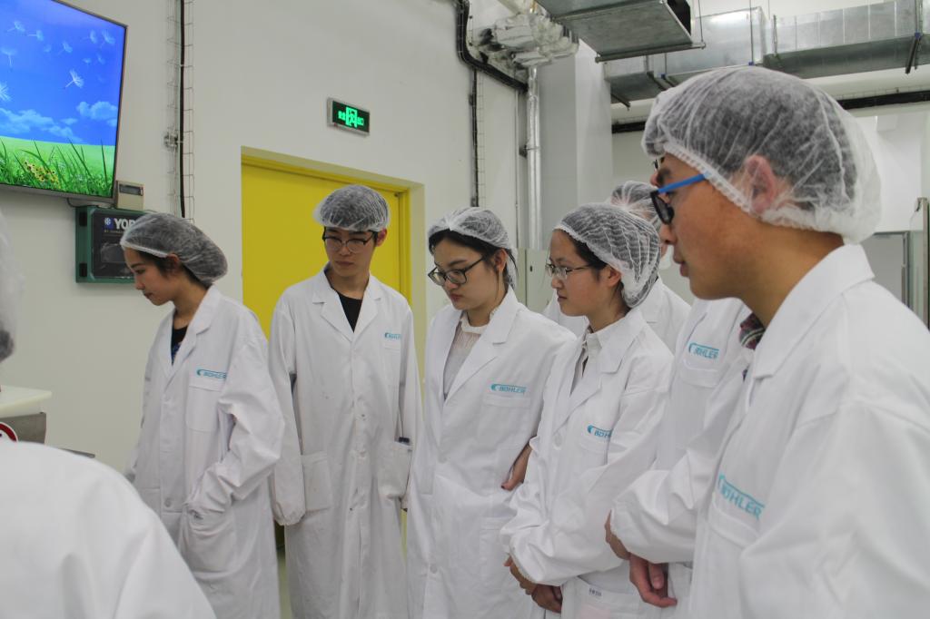 克劳斯·施密特先生表示对食品师生的来访表示欢迎。随后,在庄洁女士、赵波先生的带领下,同学们参观了布勒巧克力实验室以及生产流水线,体验巧克力制作过程,感受巧克力实践培训活动的流程。公司方代表向师生代表们详细介绍了各个实验仪器的使用方法,讲解生产流水线的操作方式,为师生模拟演示了实践培训活动的全部流程。