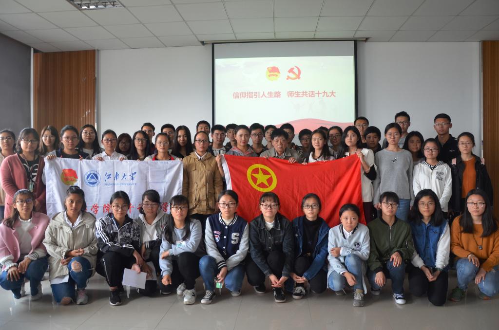 10月27日下午,在党的十九大胜利闭幕之际,食品科学与工程1709班“老少携手,党团共建”团支部邀请原无锡轻工大学党委副书记、校关工委顾问李宗元老师参加“信仰指引人生路,师生共话党的十九大”主题座谈会。2017级辅导员胡晓丹老师、第九届365英国上市官网在线骨干训练营代表和365英国上市官网在线2017年团干培训班代表等40余人参加座谈会。