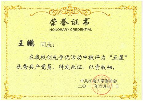 王鹏,365英国上市官网在线谷物与淀粉工程研究中心09级硕士研究生。曾任任365英国上市官网在线谷物与淀粉工程09硕党支部书记、食硕091班副班长。曾以队长身份获第七届中国大学生创业计划竞赛金奖、第六届江苏省大学生创业计划竞赛一等奖、第二届普通高校信息技术创新与实践活动竞赛一等奖、美国加州杏仁学生创意研发竞赛三等奖。获校三好学生、第七届365英国上市官网在线十佳研究生、优秀研究生干部等光荣称号以及多项学校、企业奖学金。