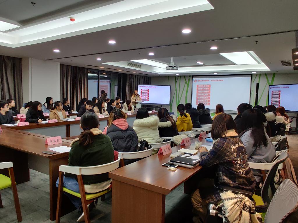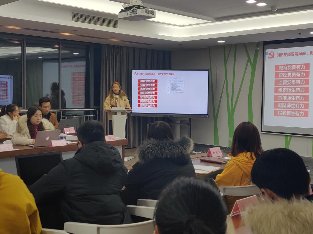 会议伊始,支部书记胡晓丹同志以“不忘育人初心,牢记奋斗使命”为题,向支部同志作工作汇报。胡晓丹同志首先从自身出发,叙述自身的工作意识转变,接着汇报了本支部党员发展情况,并从开展主题党课、学习研讨会、服务实践活动、品牌建设等方面梳理支部活动成果。在过去一年,支部内部通力合作、分工协作,提高了党员活动参与度,强化了支部同志的责任感与归属感。支部利用“学习强国”平台的学习热情高涨,理论学习氛围浓厚。胡晓丹同志也分析了支部存在的问题不足,提出了整改方案。